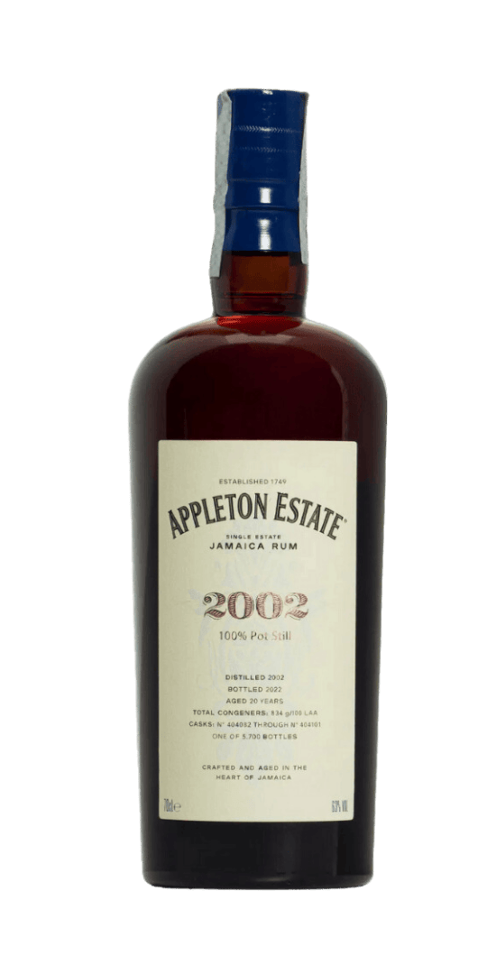 Rhum hors d’âge de la marque Appleton Estate, qui fait partie d’une gamme appelée Hearts Collection, qui regroupe des crus d’exception. C’est un rhum monovariétal, c’est-à-dire qu’il n’est pas assemblé avec d’autres rhums, et qu’il a été distillé dans un alambic en cuivre conçu exclusivement pour Appleton Estate. Millésimé de l’année 2002, il a vieilli pendant 20 ans dans des fûts de chêne américain ex-bourbon. Il est puissant, puisqu’il titre à 63% d’alcool, et il offre des arômes complexes et fruités.