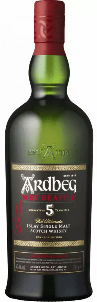 Après 5 ans de vieillissement, la tourbe est à son apogée et perd ensuite en puissance avec le temps pour davantage de douceur. Âgé de seulement 5 ans, Wee Beastie est magnifiquement tourbé avec des arômes intenses de poivre noir concassé mêlés à la résine de pin Sappy et de puissantes vagues fumées.